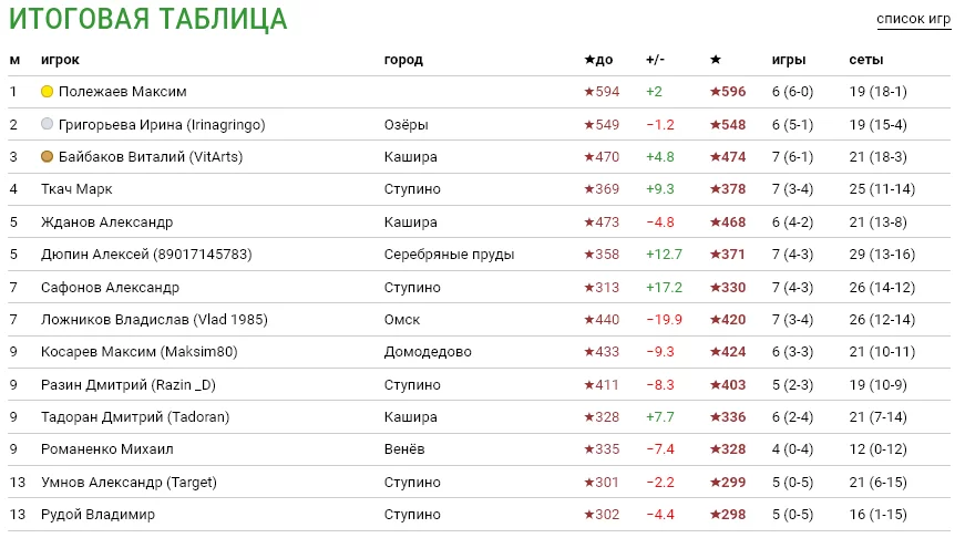 ⚙️ Посев осуществляется по рейтингу РТТФ. Возрастные ограничения 14+